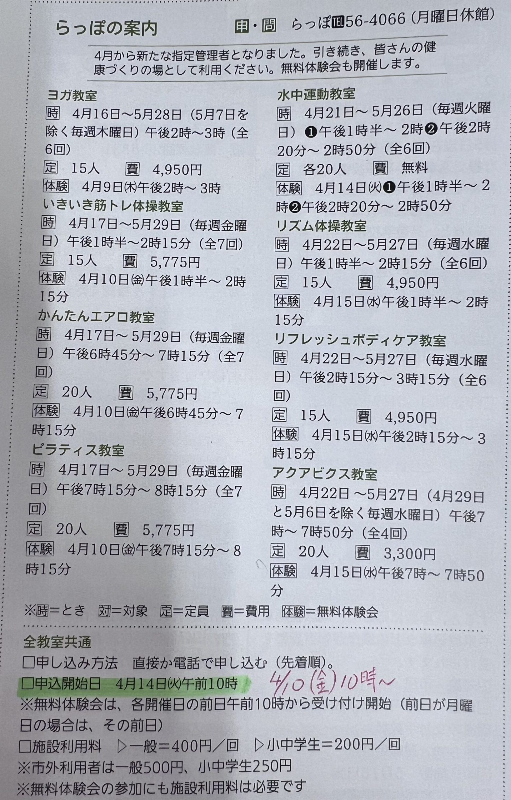広報えな4月号13ページに記載のらっぽの教室の申込開始日に誤りがございましたので、訂正のお知らせです。